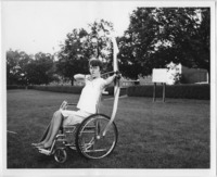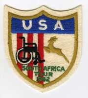 Commemorative patch for "Have Wheelchair-Will Travel" educational lecture and demonstration tour. -