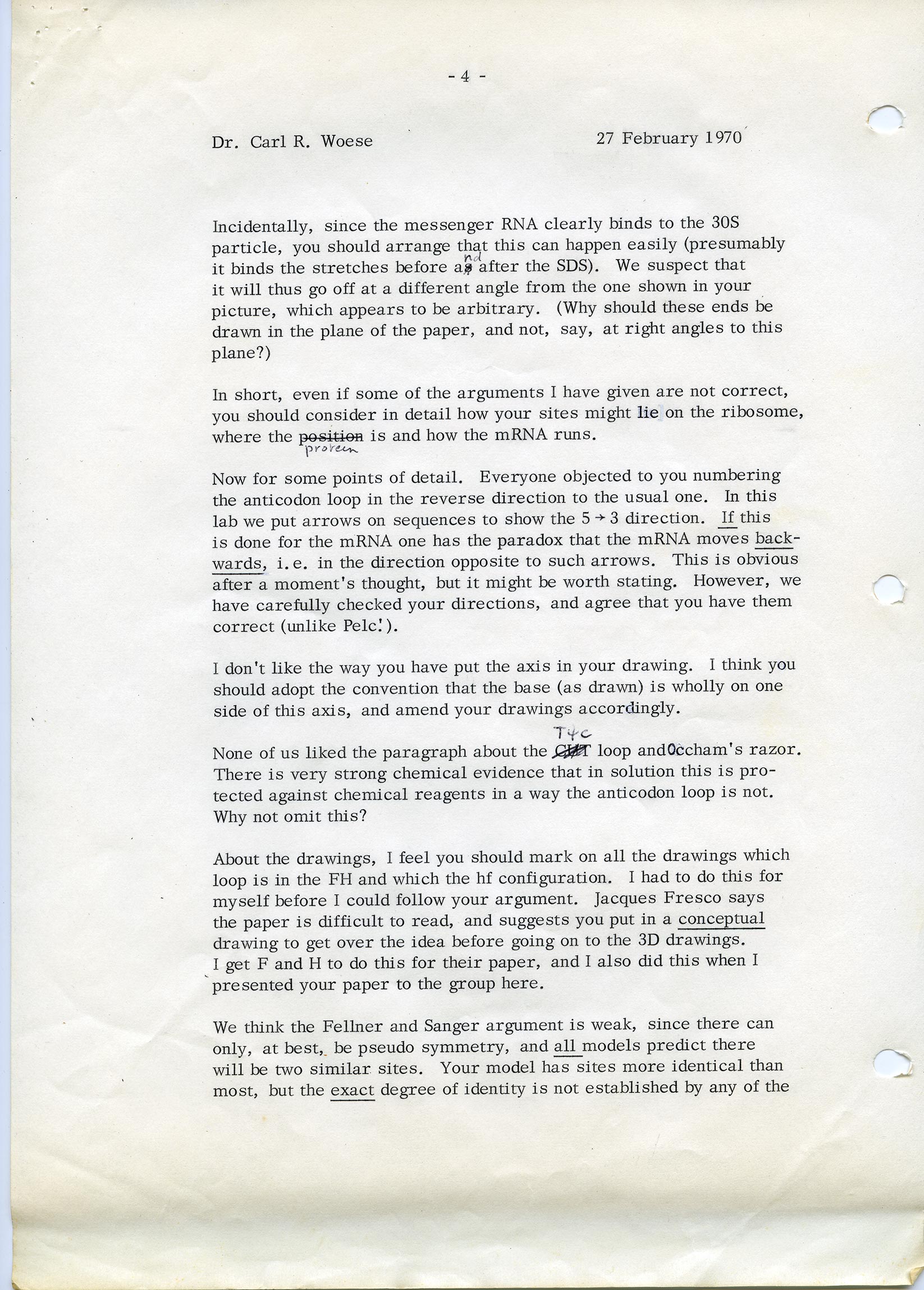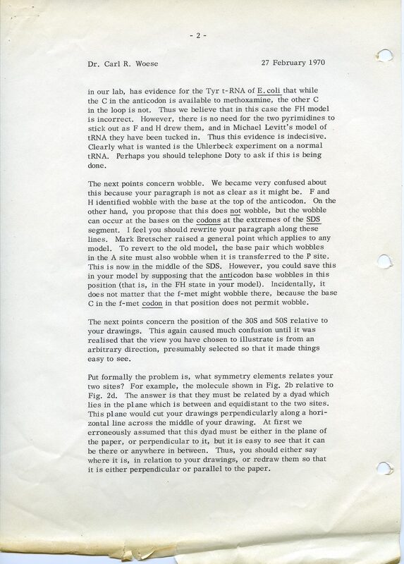 - Letter from Francis Crick to Carl Woese, 27 February 1970