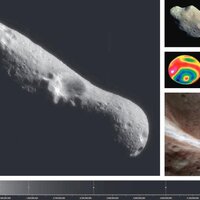 - Left, Eros; top right, Ida and its moon Dactyl; middle left, Vesta; middle right, Golevka; bottom right, Eros.