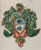 There are scrapbook elements in this collection of coats of arms of noble families of Ferrara. Each coat of arms includes a blank shield, floriate border, and helmet, likely produced from a limited set of woodblock templates. To this base, each family's crest is added above the helmet. The escutcheon may be drawn in a colored by hand, or finished with woodcut overlays. More hand coloring completes the coat of arms. The family name is inscribed below, sometimes with brief descriptions. Some shields remain blank, perhaps from lack of information. In 1689 another edition of this work was published: this time, printed entirely from woodcut, with no hand coloring or customization.