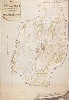 A hand-colored map of the city of Mezzago, in the parish of Vimercate, province of Milan, from the mid-eighteenth century.