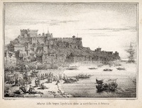 A mid-nineteenth-century lithograph depicting the Neapolitan retreat following the 1860 Battle of Milazzo between Giuseppe Garibaldi's troops and the Kingdom of the Two Sicilies.