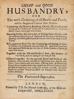 This popular "how-to" text on animal husbandry and other household uses was sold by Hannah Sawbridge (fl. 1682-86), the widow of George Sawbridge the elder (fl. 1647-81). Sawbridge was a partner in the King's Printing House, treasurer of the Company of Stationers for much of his life, and Master of the Company in 1675. He left behind a good deal of wealth to his wife, and was known as one of the greatest booksellers in England at the time. Hannah continued the (quite lucrative) printing business until his son took over.