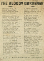 "The Bloody Gardener," in some versions titled "The Bloody Gardener's Cruelty," tells the story of a young nobleman who falls in love with a shepherd's daughter. Disapproving the match, his mother hires her gardener to murder the young woman. A dove informs the nobleman of the death. He then confronts his mother and kills himself, to be buried alongside the shepherdess. Thwarted love is an often repeated ballad theme and "The Bloody Gardener" appeared in a variety of printings, the first instance being 1754. Ballads such as this demonstrate the mingling of fictional tale and journalistic narrative in the broadside trade.
