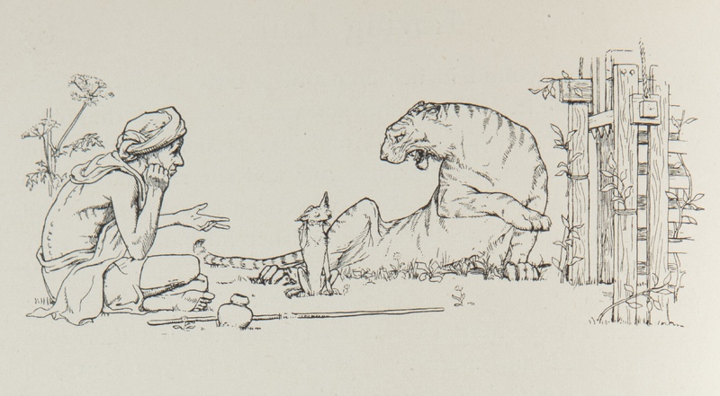 A number of the tales in Jacobs’ collection are based on or related to Jataka tales. Part of the canon of sacred Buddhist literature, these stories depict earlier incarnations (both human and animal) of Siddhartha Gautama, the future Buddha. Jataka tales are believed to have originated between 300 BC and 400 AD. “The Tiger, the Brahmin and the Jackal” is one such tale included in this collection.
