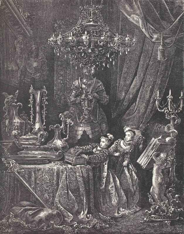 When Bluebeard learns of her discovery, he insists she must die and join the wives in the closet. Just in time, the girl’s brothers come to her rescue, killing Bluebeard and leaving her to inherit his estate. At the end of the tale, Perrault offers a moral that instructs young women to become obedient wives and suppress their curiosity. However, as the wife's disobedience resulted in a happy ending, modern folklorists have argued that the tale equally encourages women to question patriarchal rules.