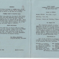 - This pamphlet provides information about the Music Library's hours of operation, the contents and organization of the collection, and library policies and services.