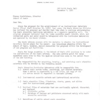 - In this letter, Music Librarian William McClellan explains to Director of the School of Music Thomas Fredrickson that the Music Education division has decided to abandon plans for a new Instructional Materials Center, citing that the current division of responsibilities between the Music Education Curriculum Laboratory and the Music Library with regard to managing instructional materials is satisfactory in its current state.