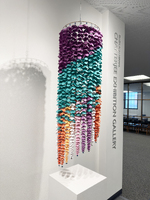 Paper, cord, resin, and glass.
