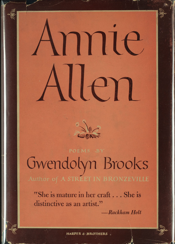 Annie Allen was Brooks’s second volume of poetry, the centerpiece of which is a 43-stanza poem called “The Anniad.” The Greek suffix appended to the titular character’s name emphasizes the heroic characteristics of Annie, placing her racial and gendered experiences in mid -20th century America as struggles not unlike those of the Greek heroes in The Iliad and The Aeneid. Annie’s story begins with that of her birth, and continues through girlhood into young womanhood. She confronts racial prejudice, sexism, and loss. A sense of profound alienation within and without oneself makes Annie’s coming of age simultaneously a universal—what young woman hasn’t felt this way?— and specific to the Black experience of the 1940s. What is a home where you can return from war but not drink from a public water fountain?